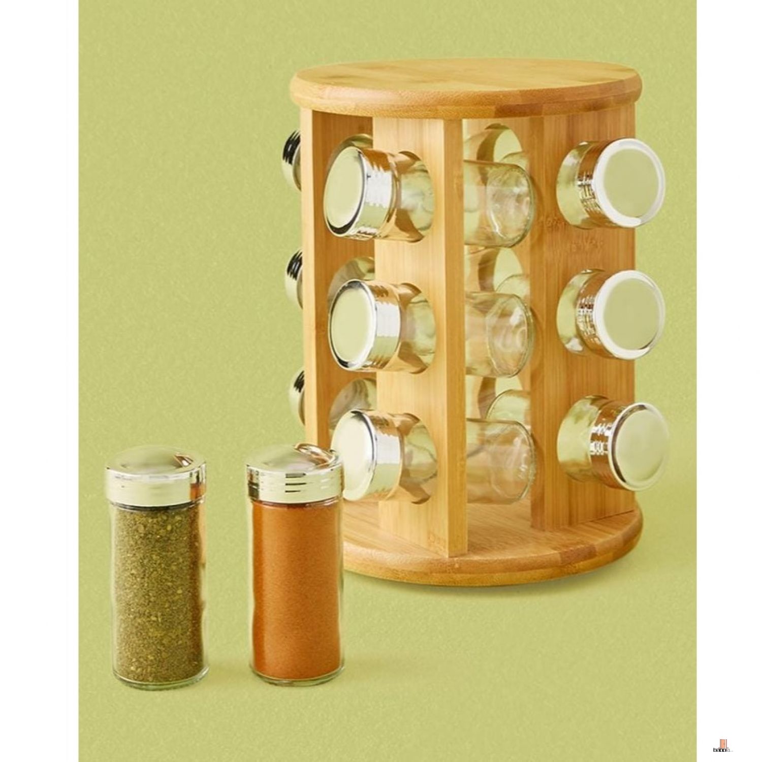 طقم بهارات مكون من 12 قطعه مع حامل من الخشب