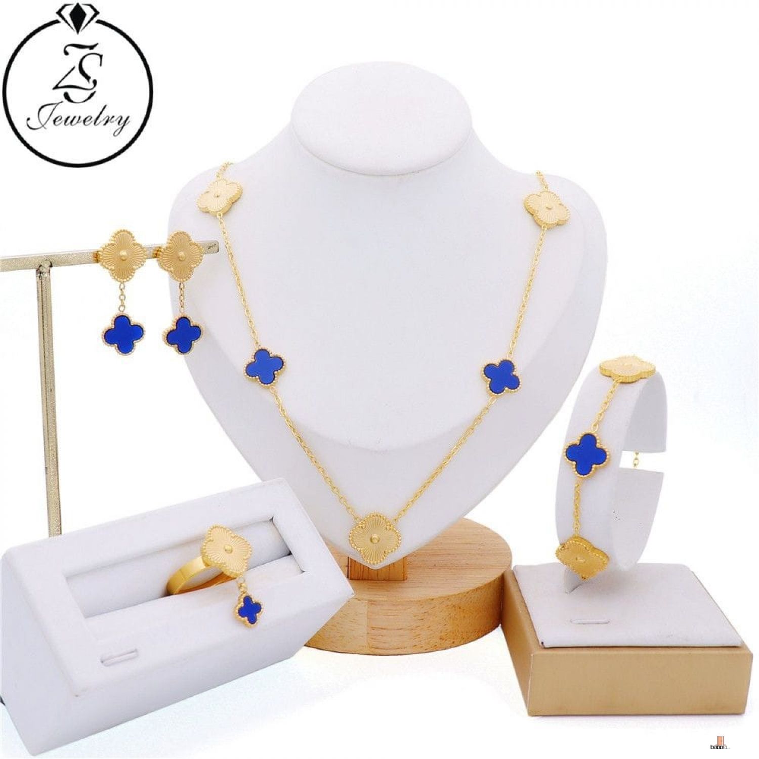 طقم من الفولاذ المقاوم للصدأ مطلي بالذهب عيار 18 قيراط عالي الجودة للنساء