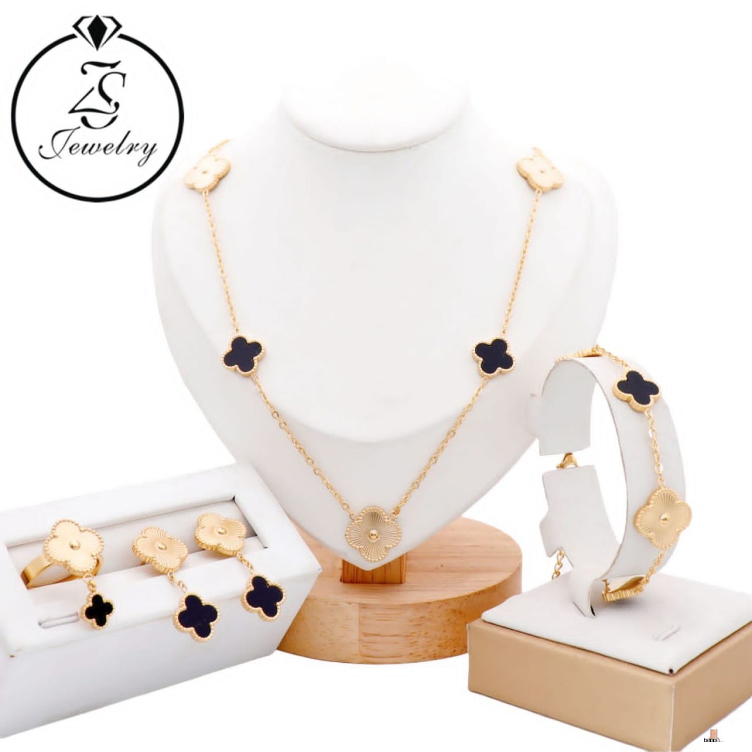 طقم من الفولاذ المقاوم للصدأ مطلي بالذهب عيار 18 قيراط عالي الجودة للنساء