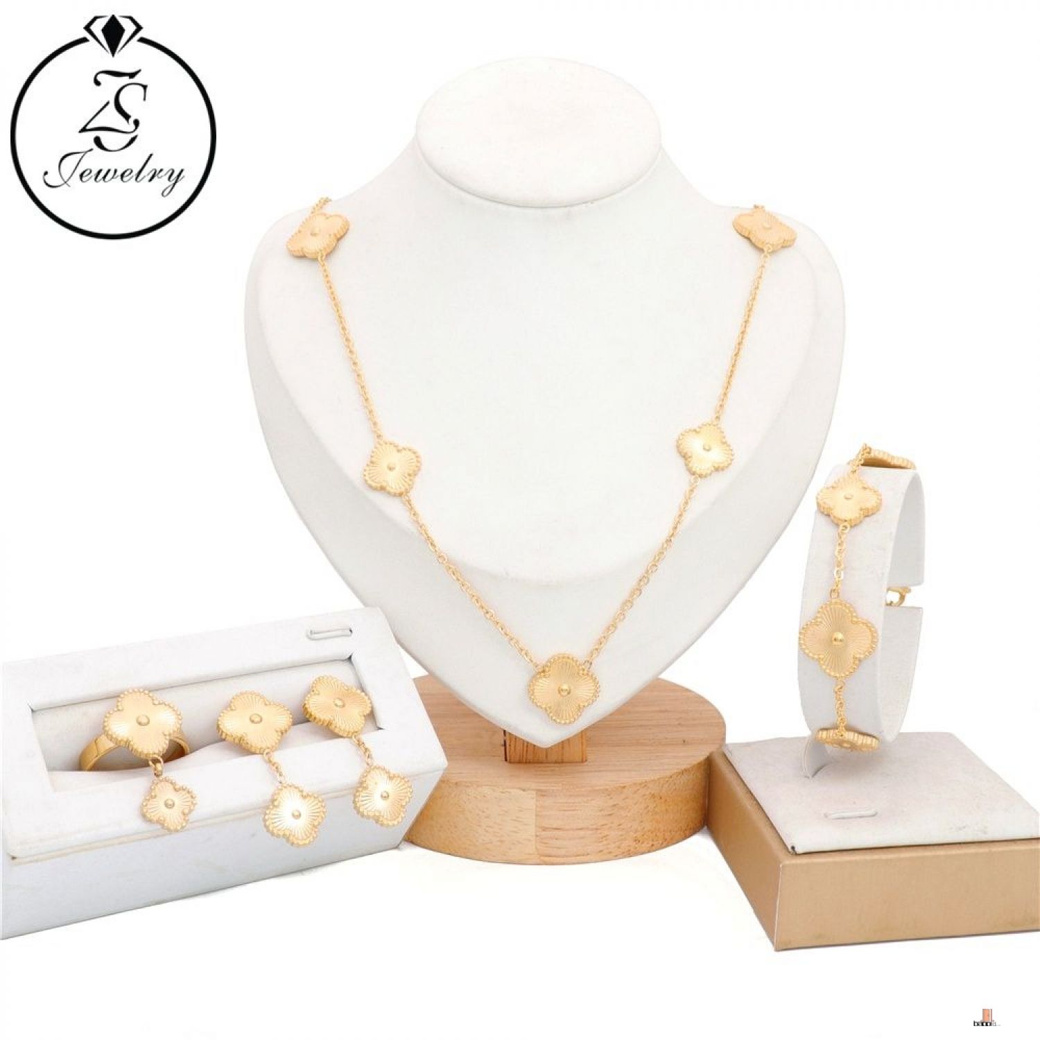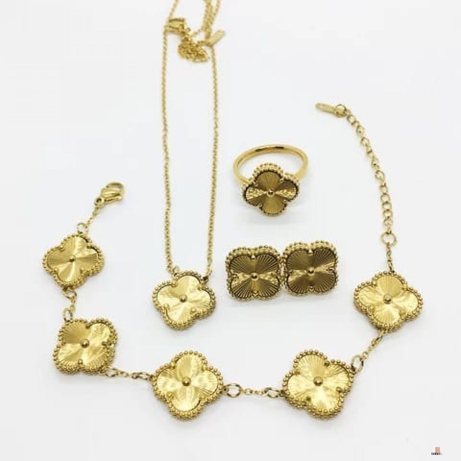 طقم من الفولاذ المقاوم للصدأ مطلي بالذهب عيار 18 قيراط عالي الجودة للنساء