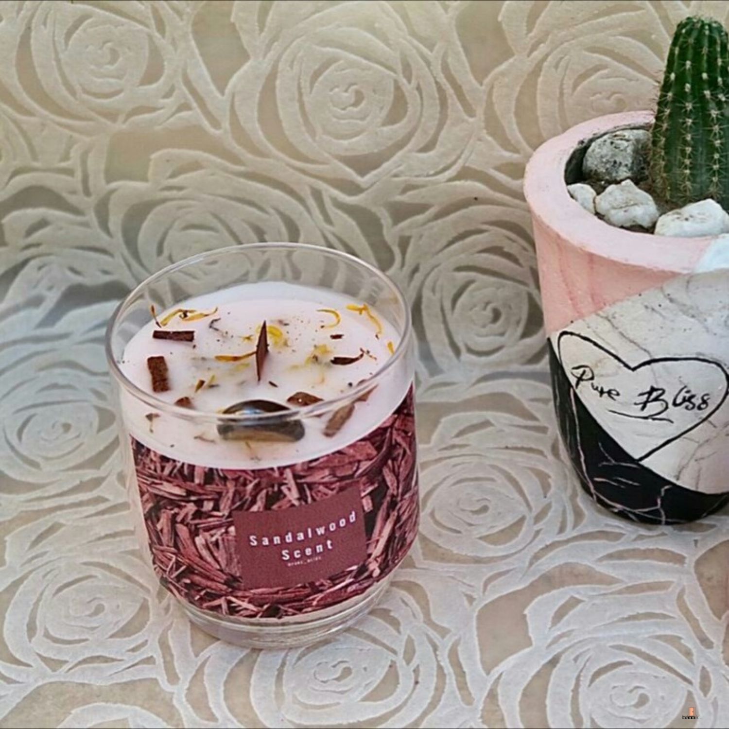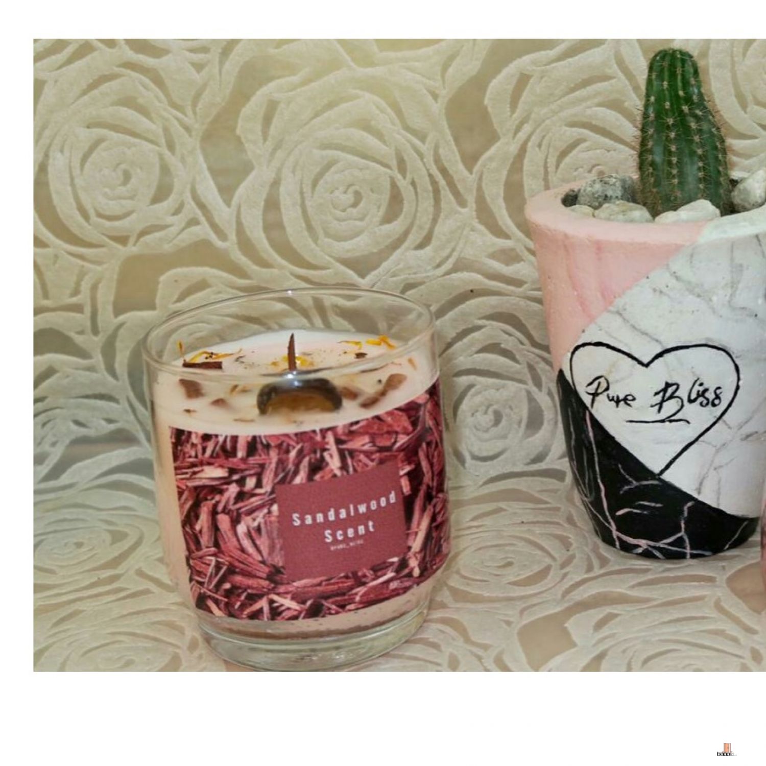 شمعة برائحة الورد الطبيعي وخشب الصندل
