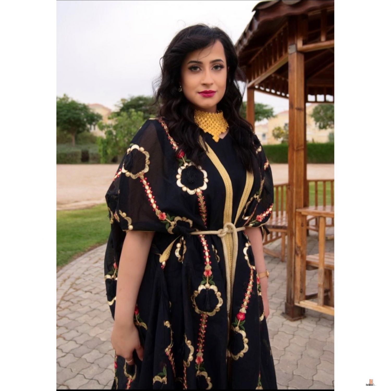 جلابية باللون الاسود والذهبي