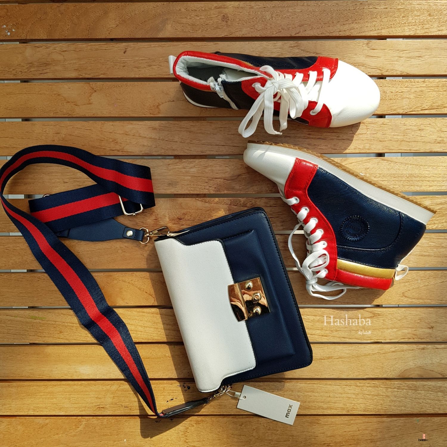 Dark blue and red bag and boots set طقم حذاء وحقيبة احمر وازرق داكن