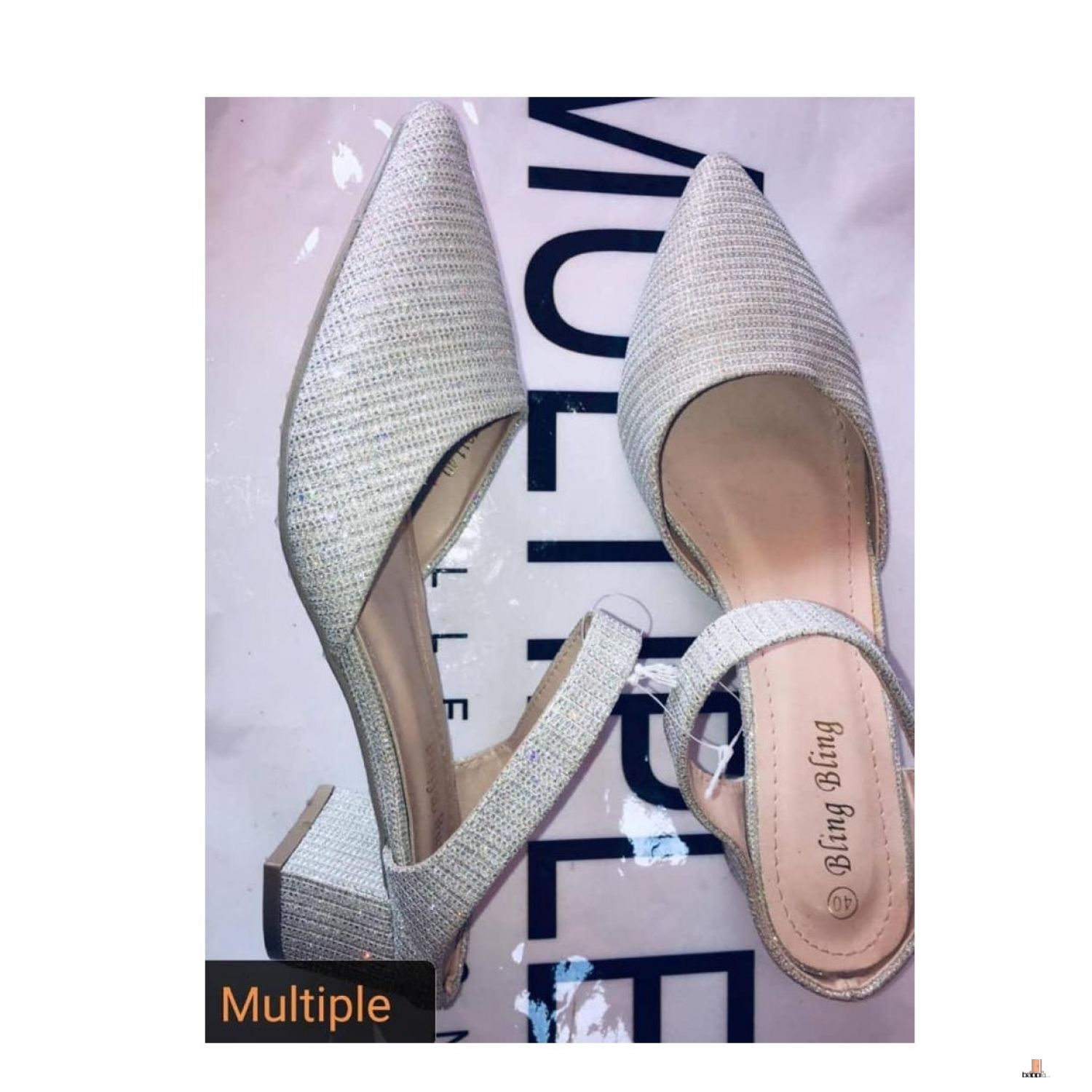 حذاء فضي كعب متوسط