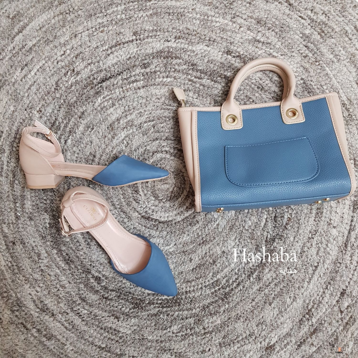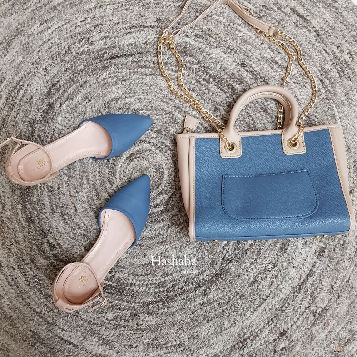 Pastel blue bag and shoe set طقم حذاء وحقيبة ازرق باستيل