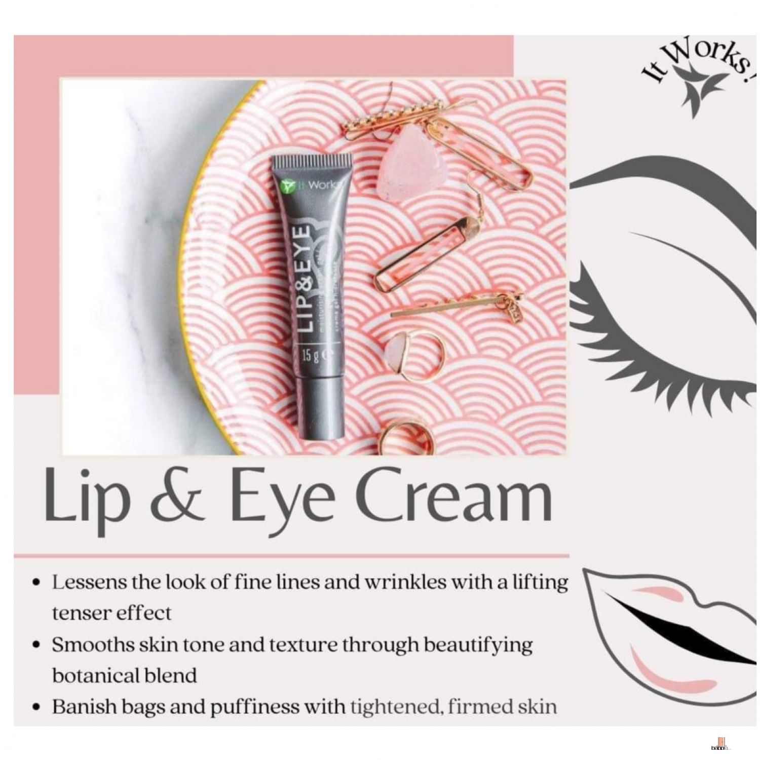 يزيل الأكياس والانتفاخ لاعطاء ملمس ناعم، مشدود حول العين والشفاه.