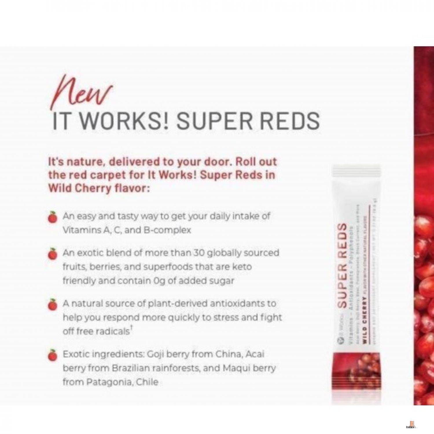 يحتوي سوبر رد علي اكثر من 30 مصدر طبيعي للفواكه التي تحتوي علي الفايتمينات و مضادات الأكسدة التي تساعد علي تقليل الاسترس