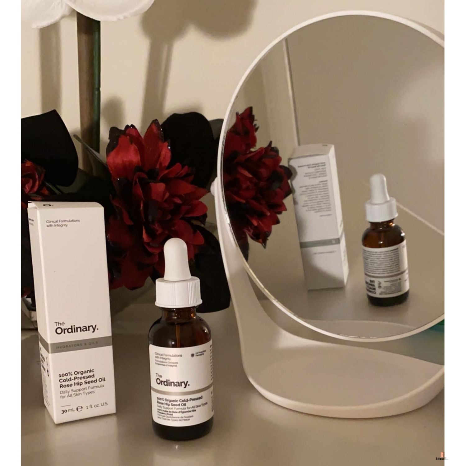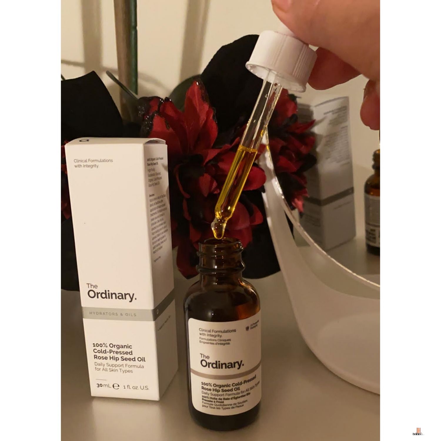 تستخدم هذه التركيبة زيت بذور ثمر الورد النقي بنسبة 100 في المائة - غني بحمض اللينوليك وحمض اللينولينيك وبروفيتامين أ - وهو معصور على البارد وعضوي. لقد ثبت أن هذا الزيت يقلل من علامات الشيخوخة الضوئية والعديد من الأمراض الجلدية الأخرى.