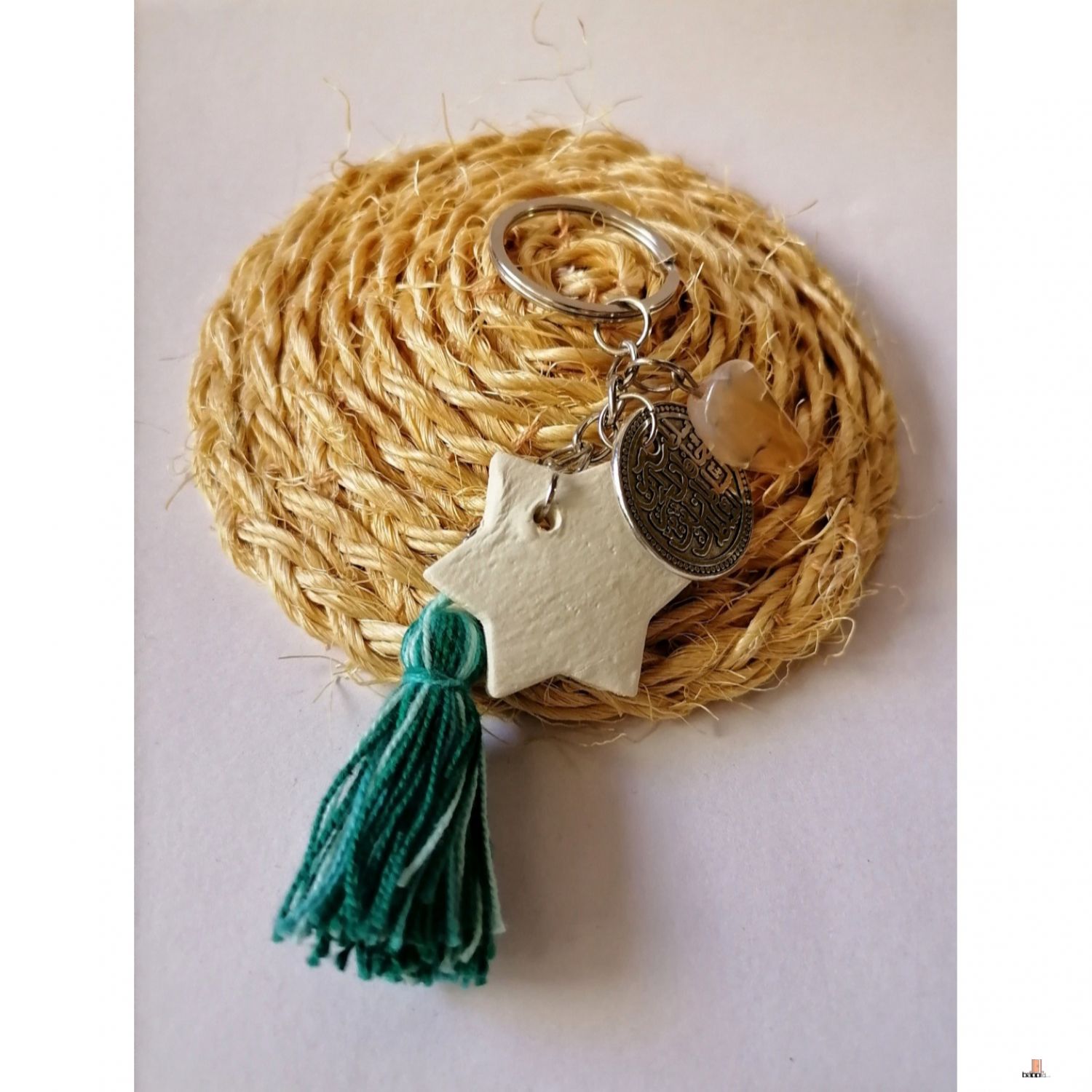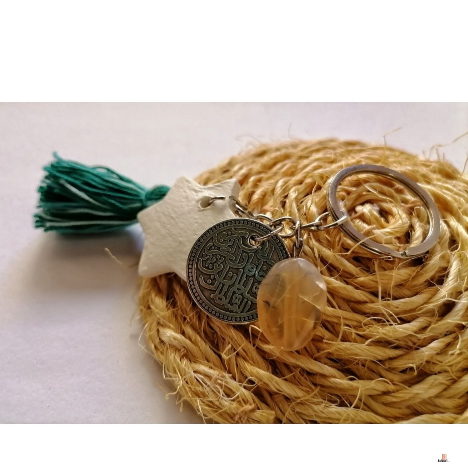 Accessories used are natural Agate stone, silver tinted traditional coin accessory, air-dry ceramic clay & cotton thread hand-made tassels.