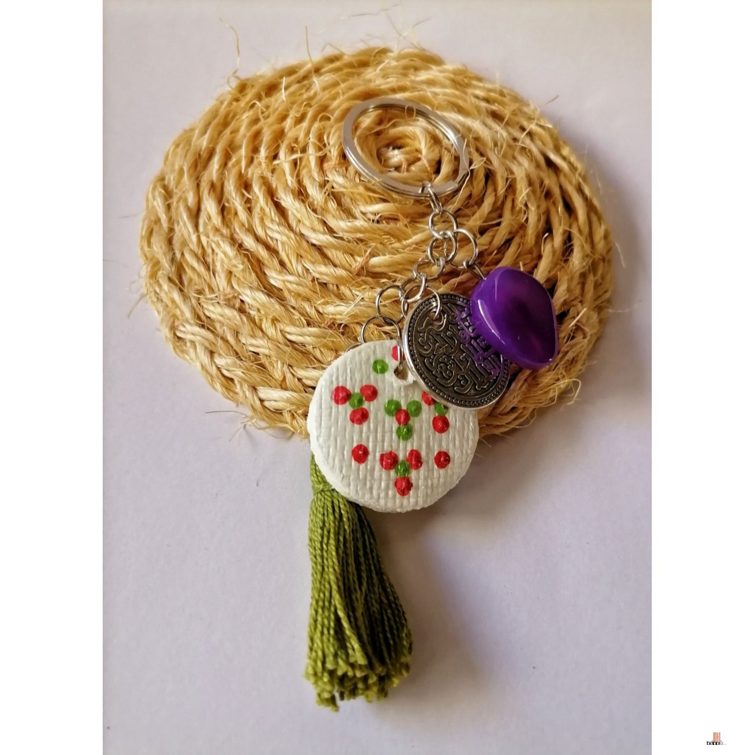 Accessories used are natural Agate stone, silver tinted traditional coin accessory, air-dry ceramic clay & cotton thread hand-made tassels.