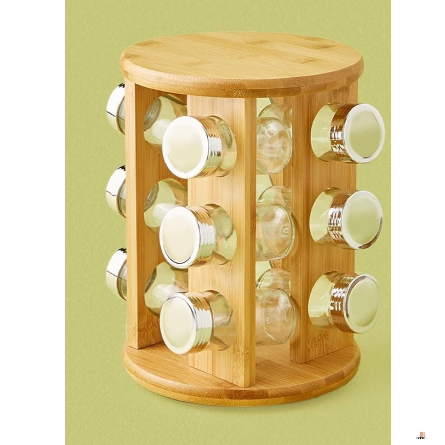 طقم بهارات مكون من 12 قطعه مع حامل من الخشب
