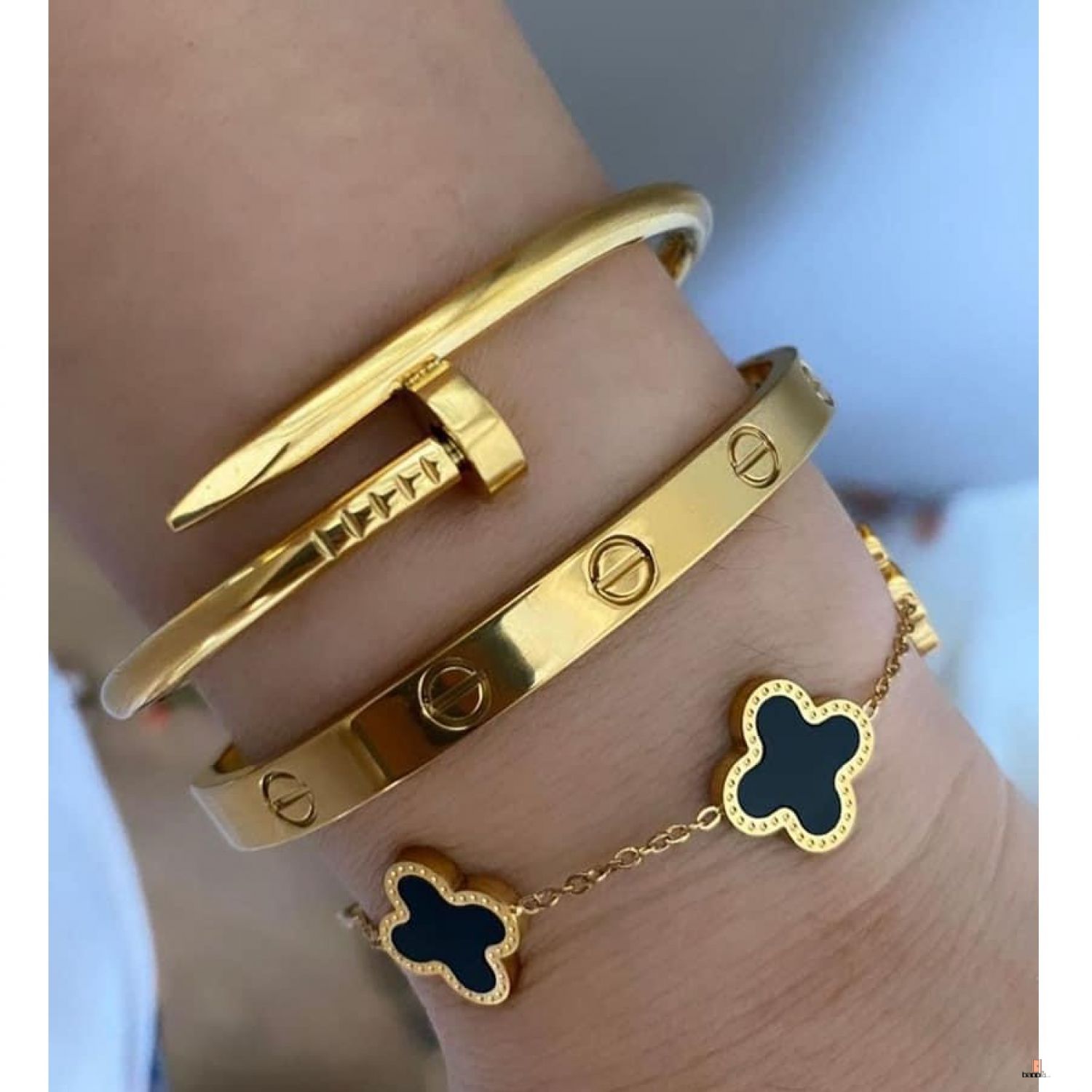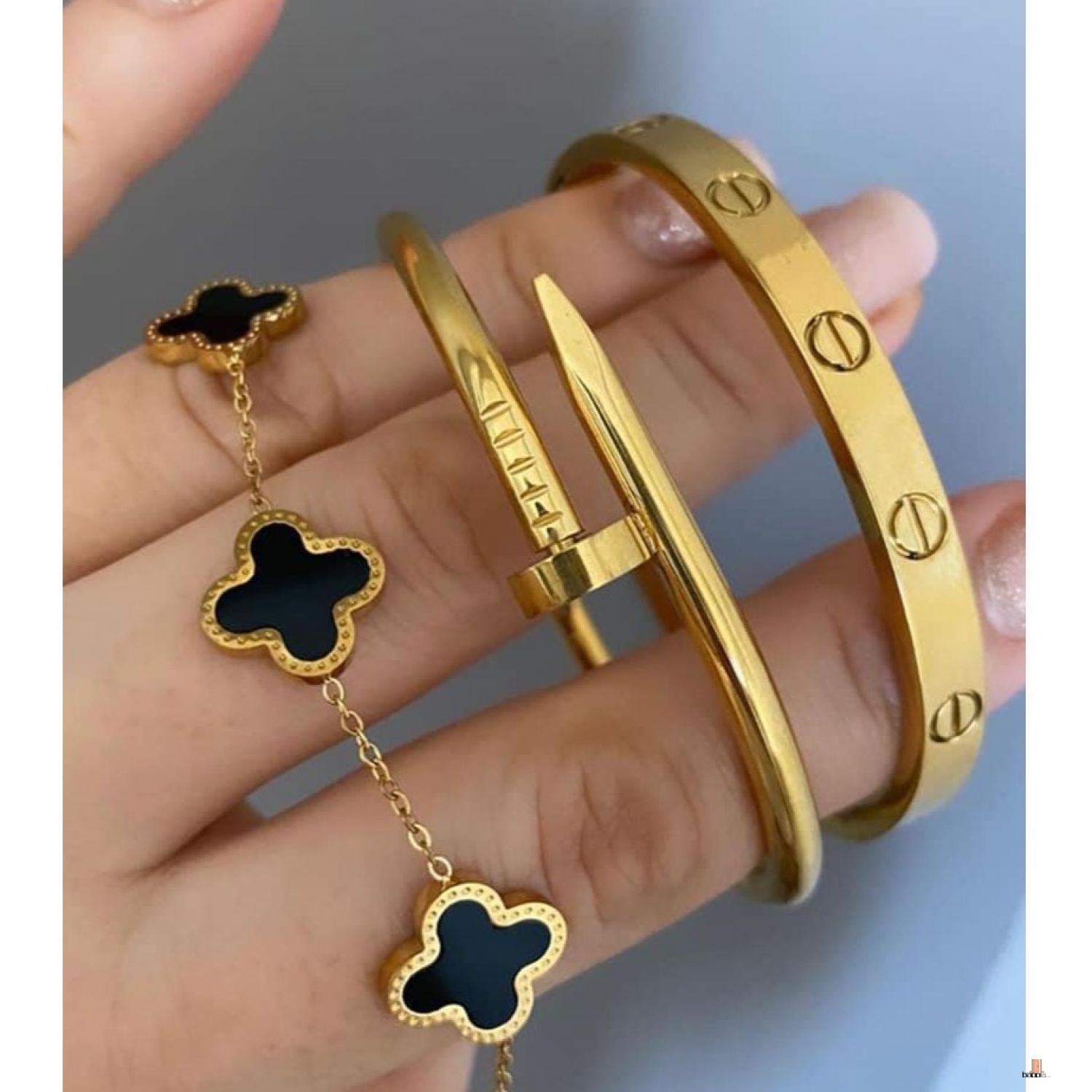 طقم من الفولاذ المقاوم للصدأ مطلي بالذهب عيار 18 قيراط عالي الجودة للنساء