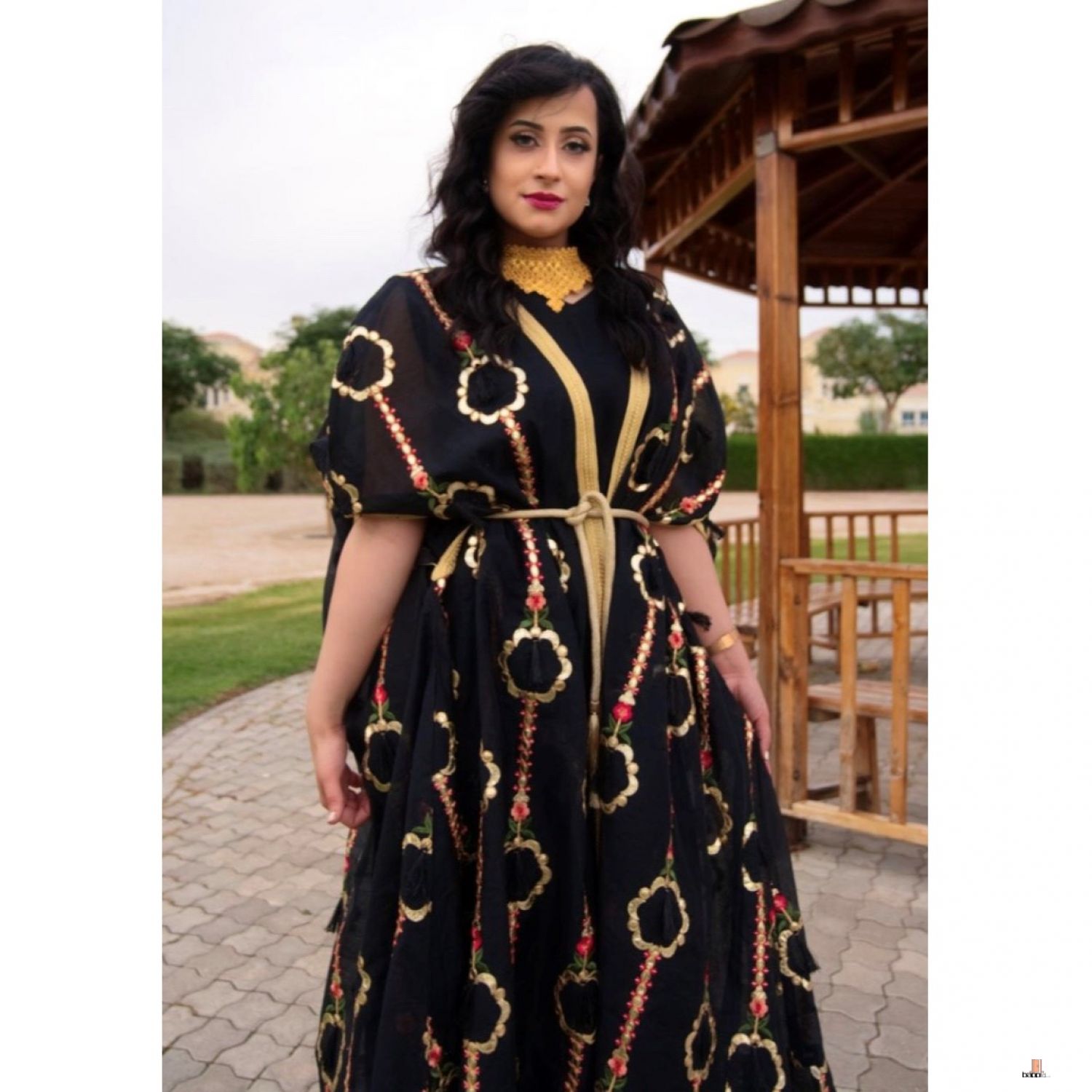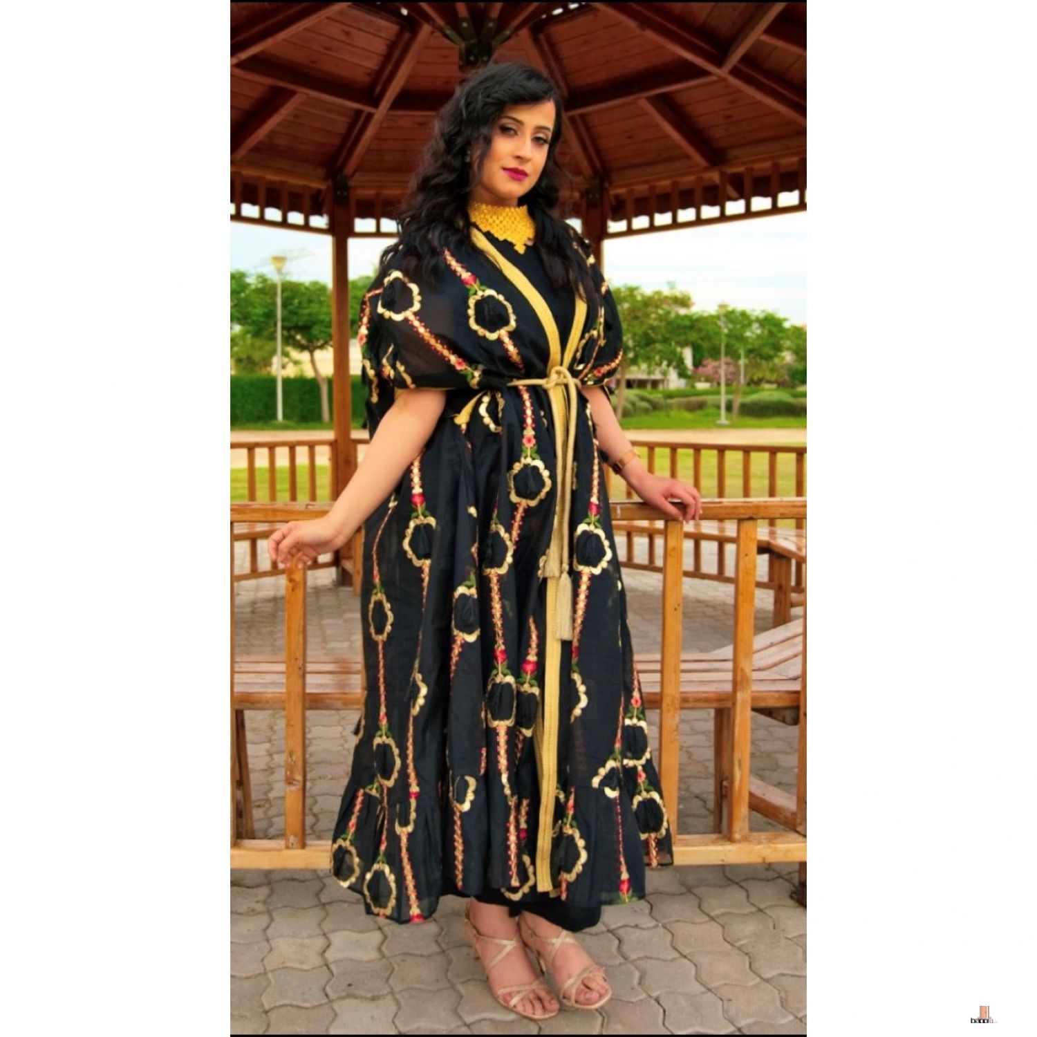 جلابية باللون الاسود والذهبي