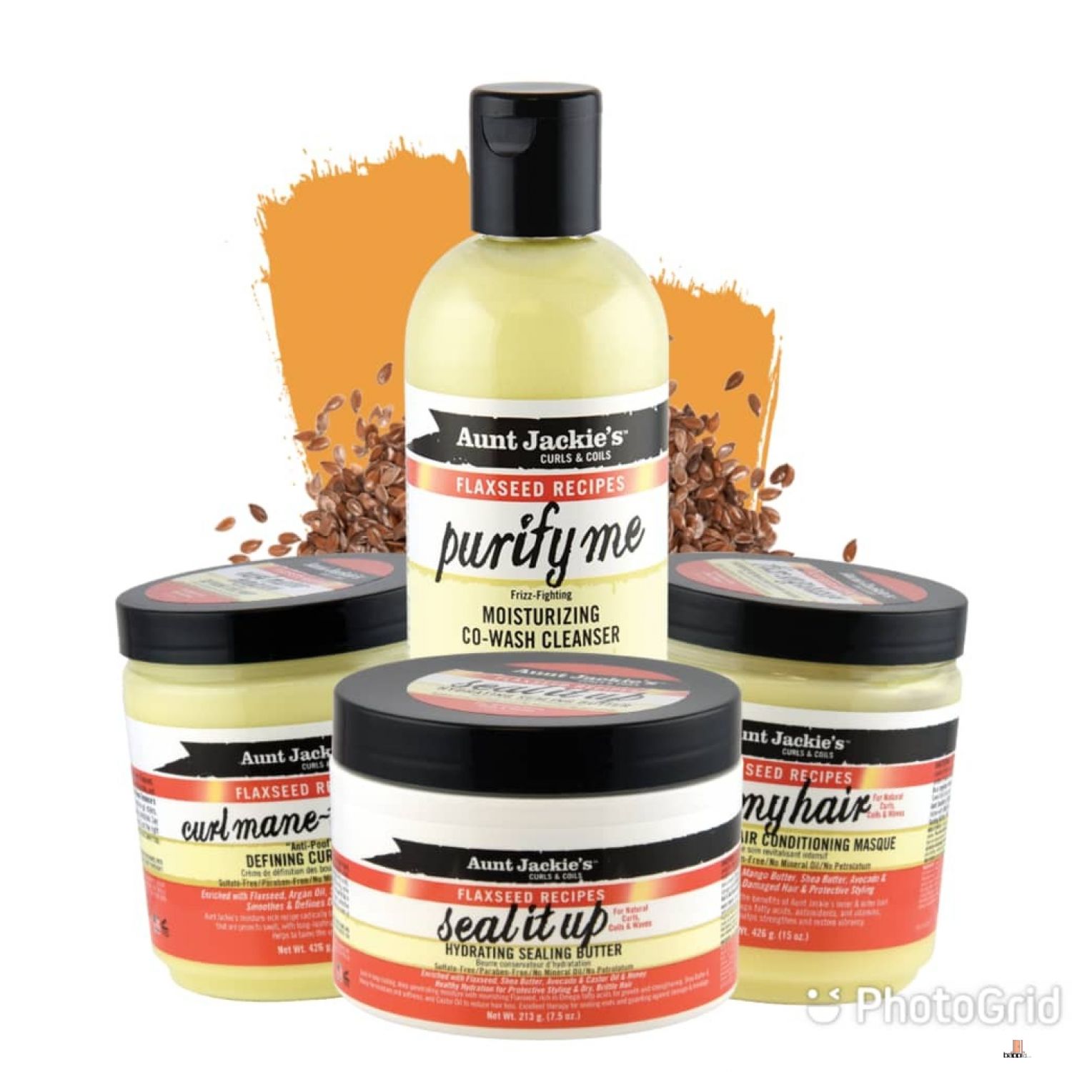 إصلاح لا مثيل له! مزيج Aunt Jackie الخاص من زيت بذور الكتان والأفوكادو وجوز الهند يستخدم للمساعدة في إصلاح التلف ، ووقف التقصف ، وتنعيم ، وتألق ، وترطيب ، وترطيب الشعر الجاف ، والهش ، والسلكي.