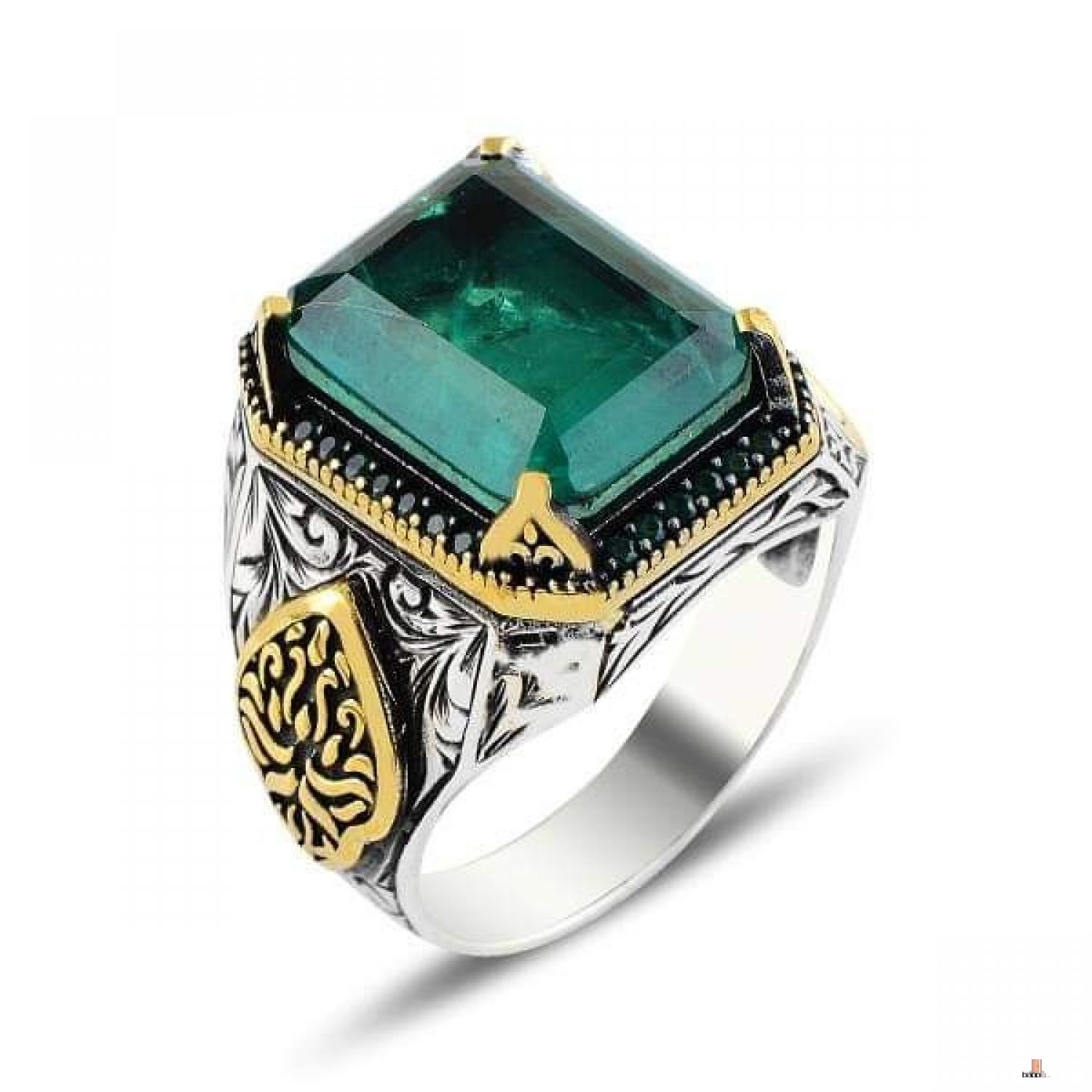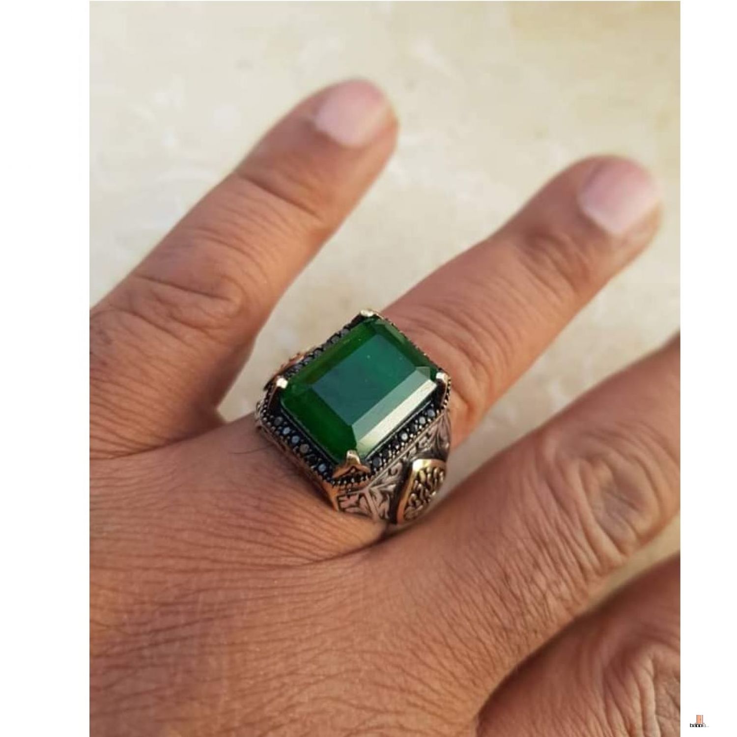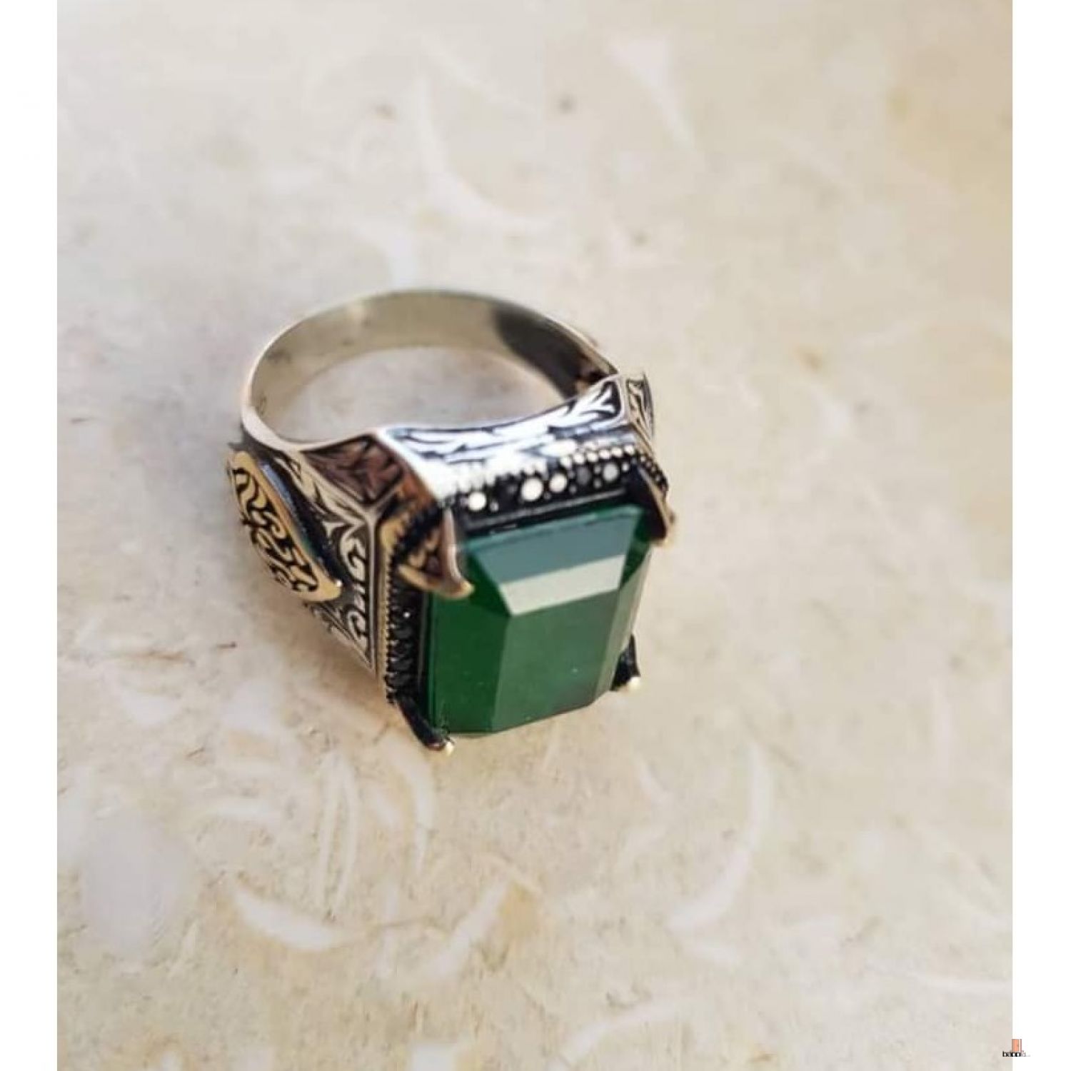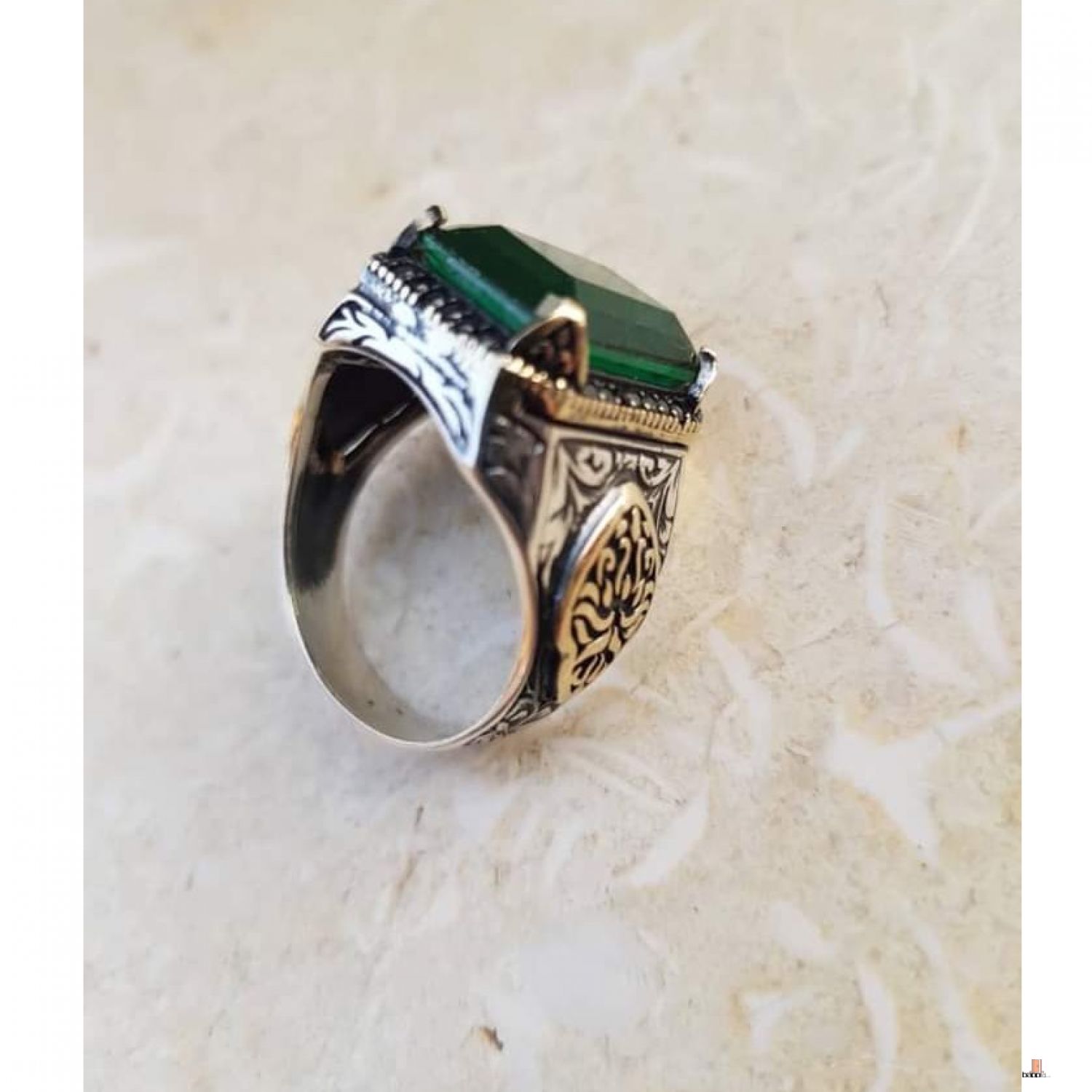 كيف تسعدي زوجك وحبيبك؟ بخاتم فضة تركي عيار 925 مصنوع يدويا علي الطراز العثماني ومطعم بحجر الزركون الأخضر الفاخر لتكون معه تحفة فنية يتذكرك بها