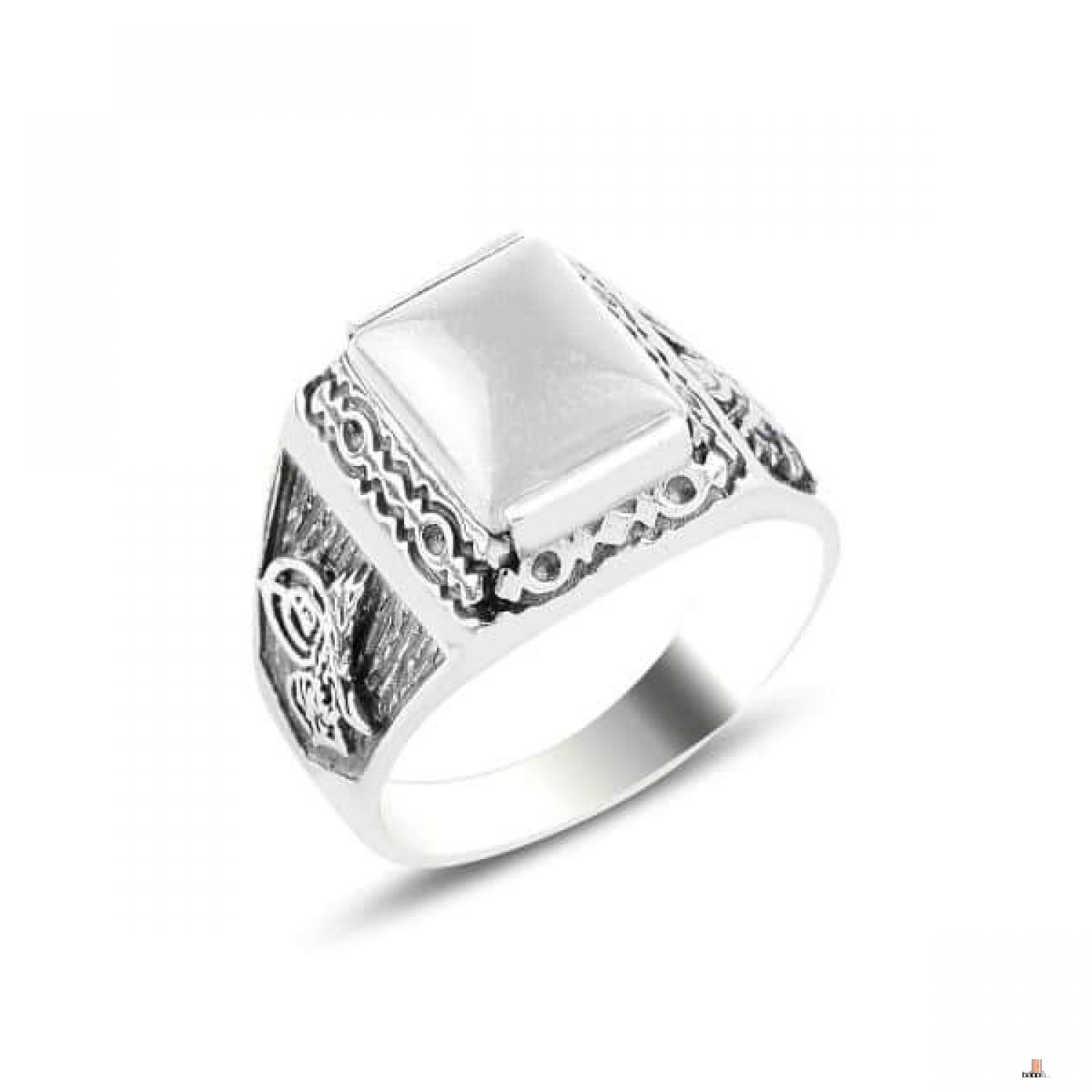 دلع نفسك بخاتم فضة عثماني مصنوع من حجر الكريسوبيريل(عين القط الابيض) النادر بحيث اي شخص سيسألك عنه