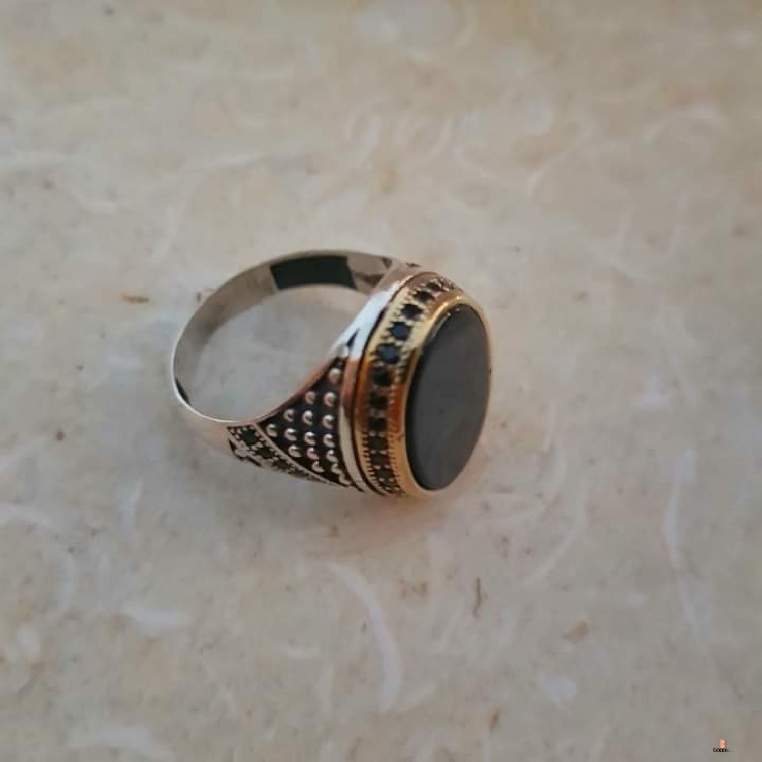 كيف تسعدي زوجك وحبيبك؟ بخاتم فضة تركي عيار 925 مصنوع يدويا علي الطراز العثماني ومطعم بحجر العقيق اليماني( جزع ) لتكون معه تحفة فنية يتذكرك بها