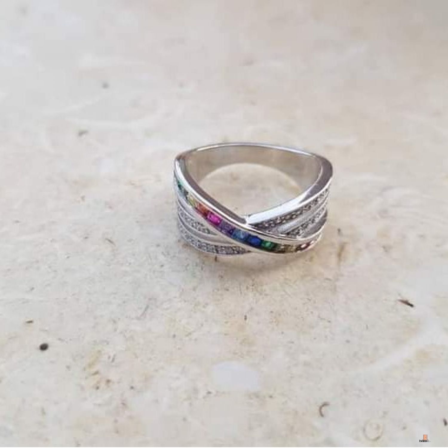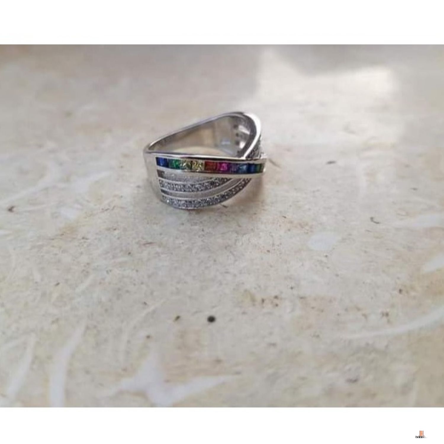 حبيبتك وزوجتك وام اولادك، تستاهل خاتم جميل يليق بيها، اهديها الخاتم الملون الفضي عيار ٩٢٥ صناعة يدوية بالكامل، مرصع زيركون ملون