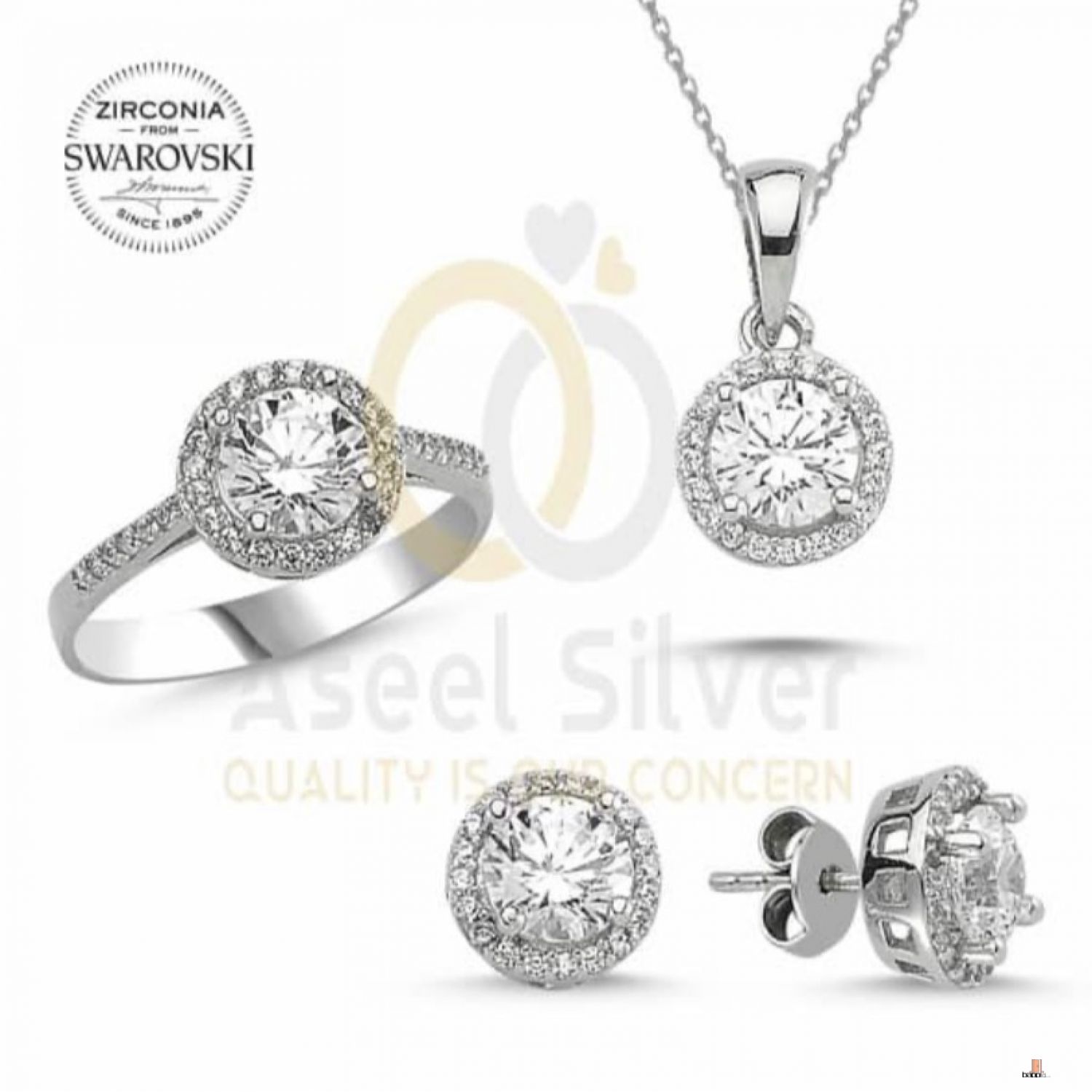 طقم الفضة مربع امرأة Montur سواروفسكي من الفضة للسيدات مع شهادة ضمان سواروفسكي