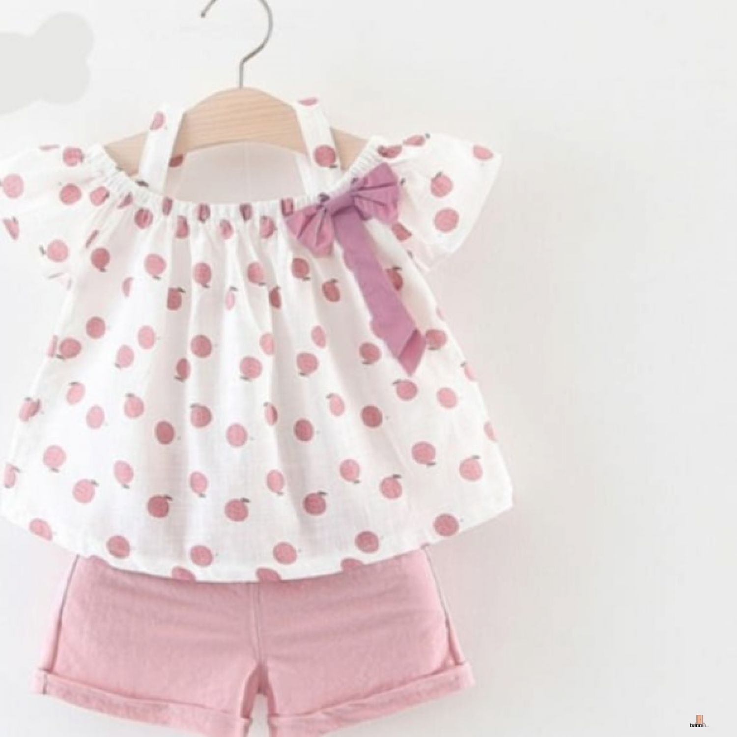 شورت بناتي انيق مع تيشيرت منقوش بفاكهة الكرز باللون النوت مع الابيض