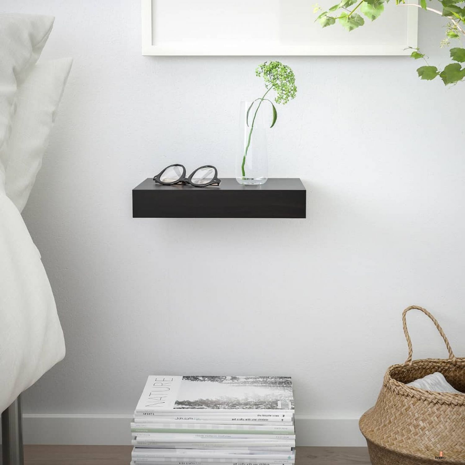 هذا الرف الحائطي ذو تصميم بسيط ولديه تعليق أنيق وغير مرئي تقريباً. حاملات الرف المخفية تبدو وكأنها جزء من الجدار - ولا تحتاجين أيضًا إلى شراء حاملات
