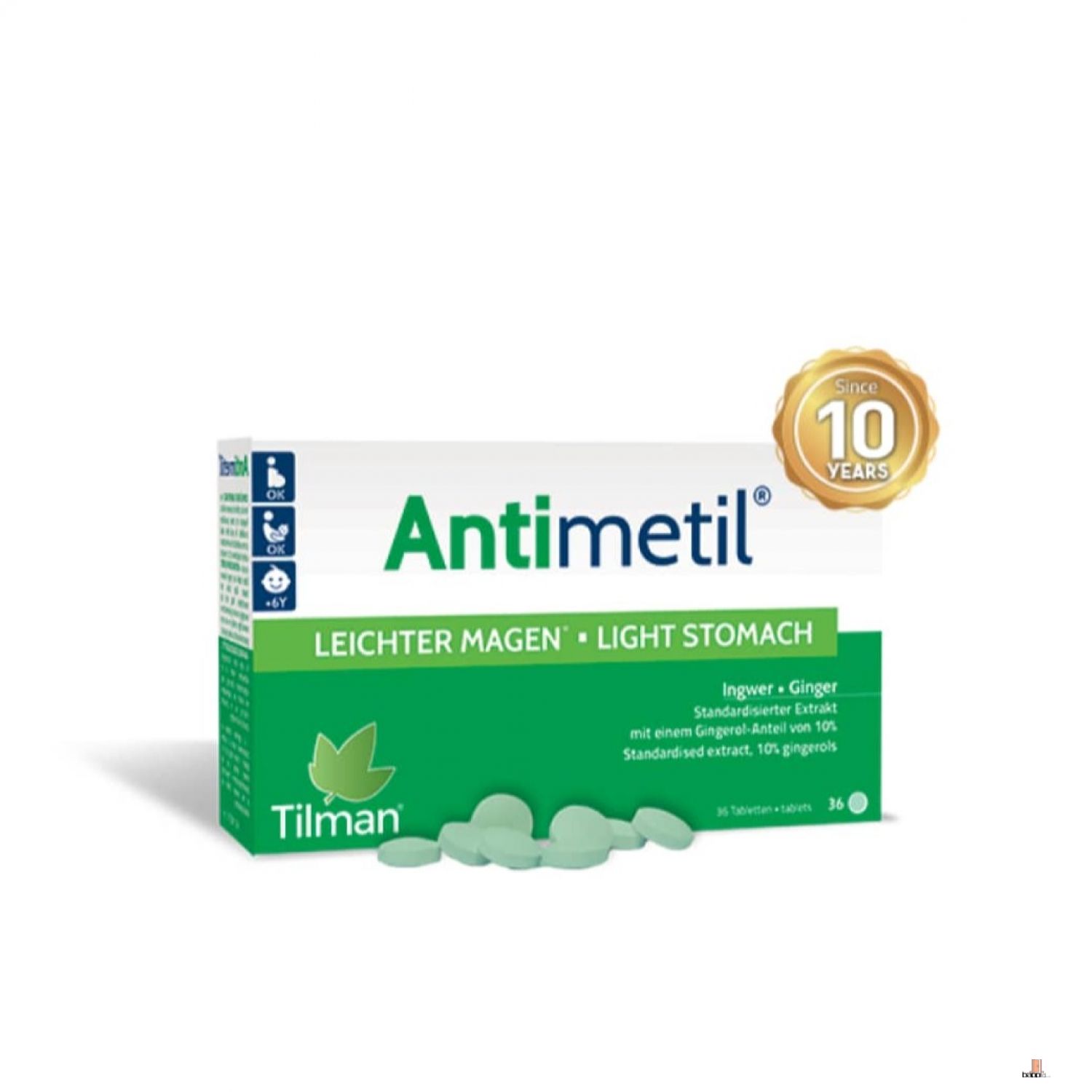 الزنجبيل له دور مهم لمساعدتك على تقليل المضايقات الهضمية المؤقتة ، دون التسبب في آثار ضارة. تم إثبات أهمية الزنجبيل من خلال العديدمن الدراسات التي أجريت على مجموعات مستهدفة مختلفة من المستخدمين ، بما في ذلك النساء الحوامل. يحتوي أنتيميتيل على 10 أضعاف مستخلص الزنجبيل المركز أكثر من مسحوق الزنجبيل التقليدي. تركيبته الطبيعية مناسبة تمامًا لمساعدتك في الحفاظ على التوازن الهضمي الأمثل