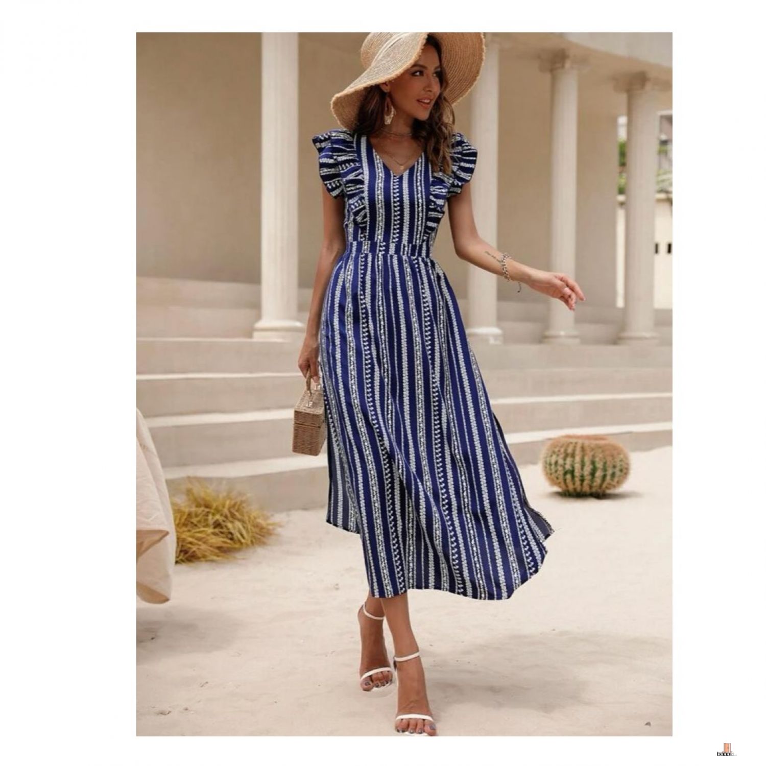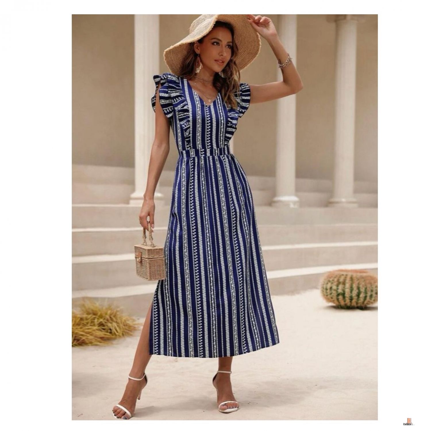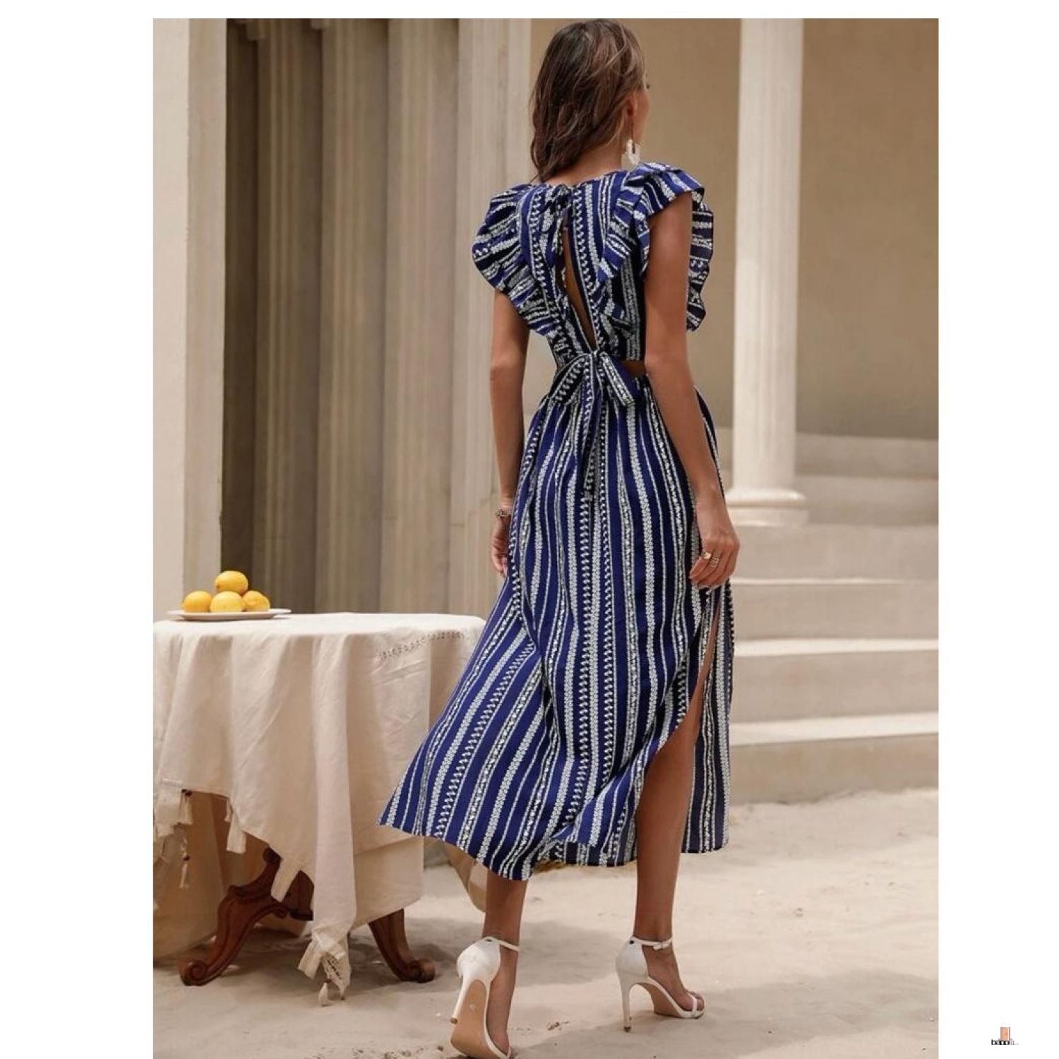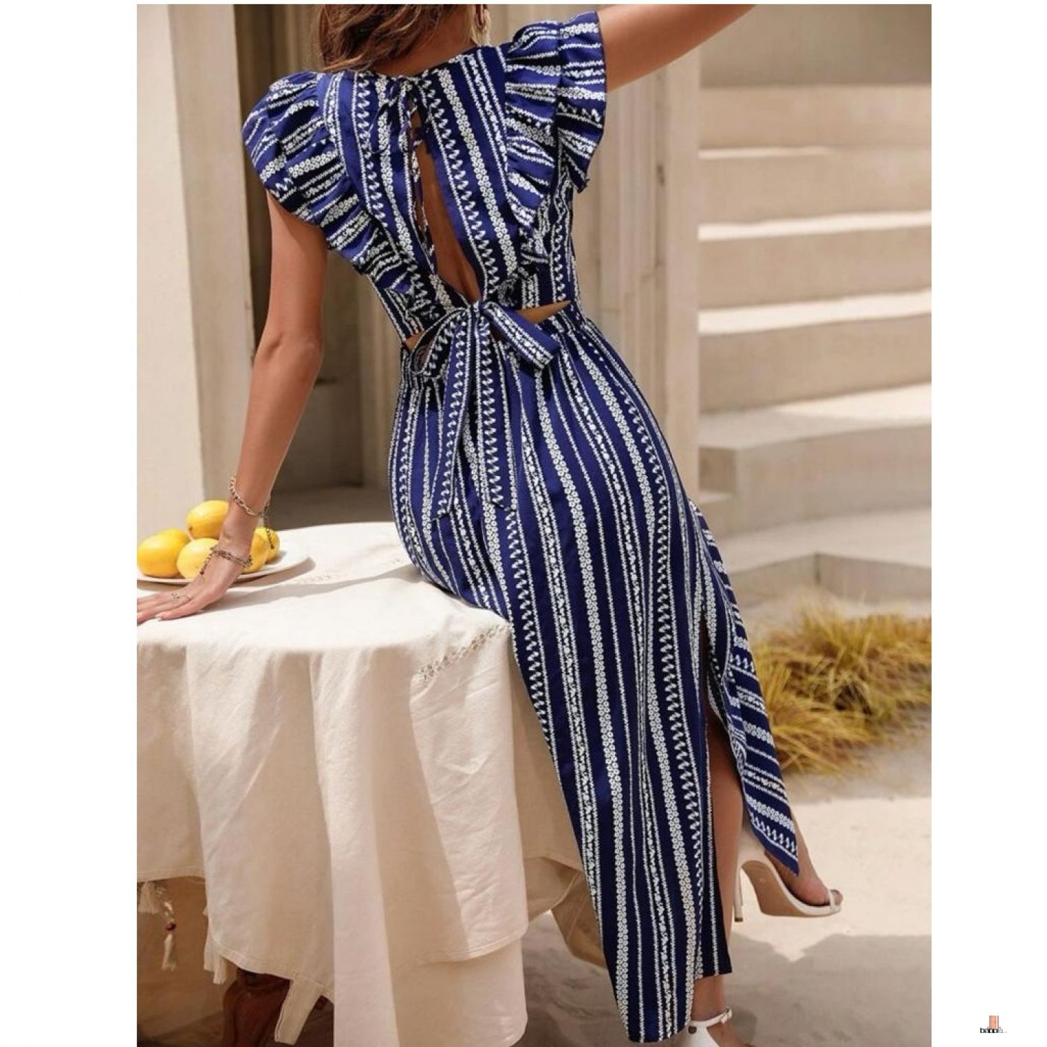 Allover Print Butterfly Sleeve Tie Back Split Thigh Dress