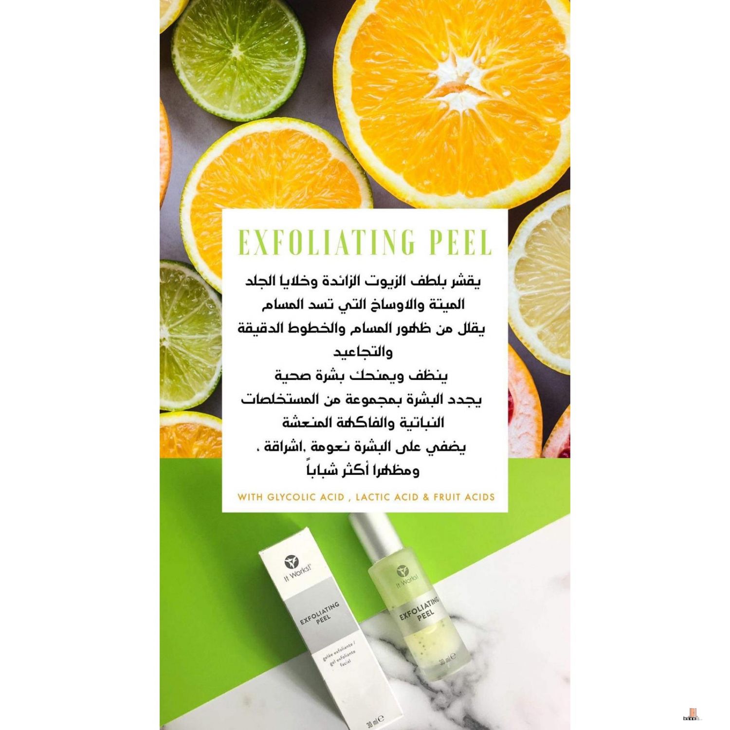 مقشر البيل مقشر يحتوي علي العديد من احماض الفواكهة  يجعل البشره أكثر شباب وضياء ونعومة يقشر بلطف وبصورة طبيعية ويفتح اللون