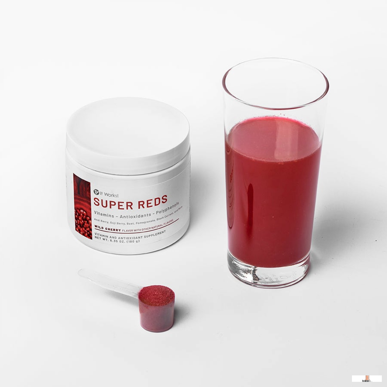 يحتوي سوبر رد علي اكثر من 30 مصدر طبيعي للفواكه التي تحتوي علي الفايتمينات و مضادات الأكسدة التي تساعد علي تقليل الاسترس