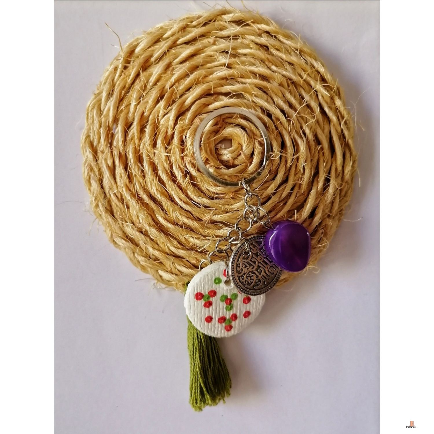 Accessories used are natural Agate stone, silver tinted traditional coin accessory, air-dry ceramic clay & cotton thread hand-made tassels.